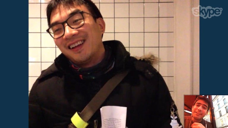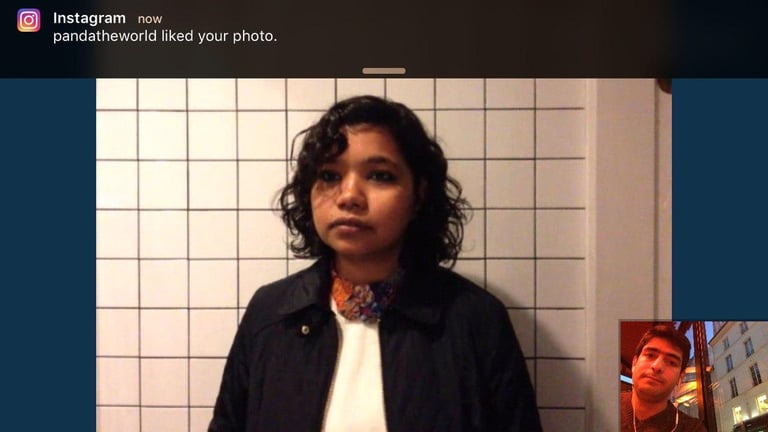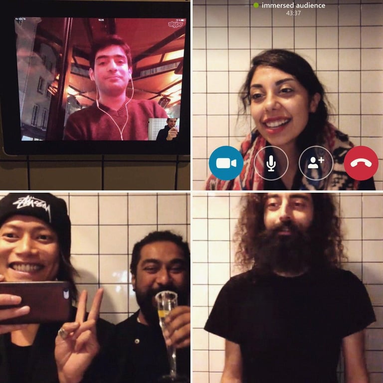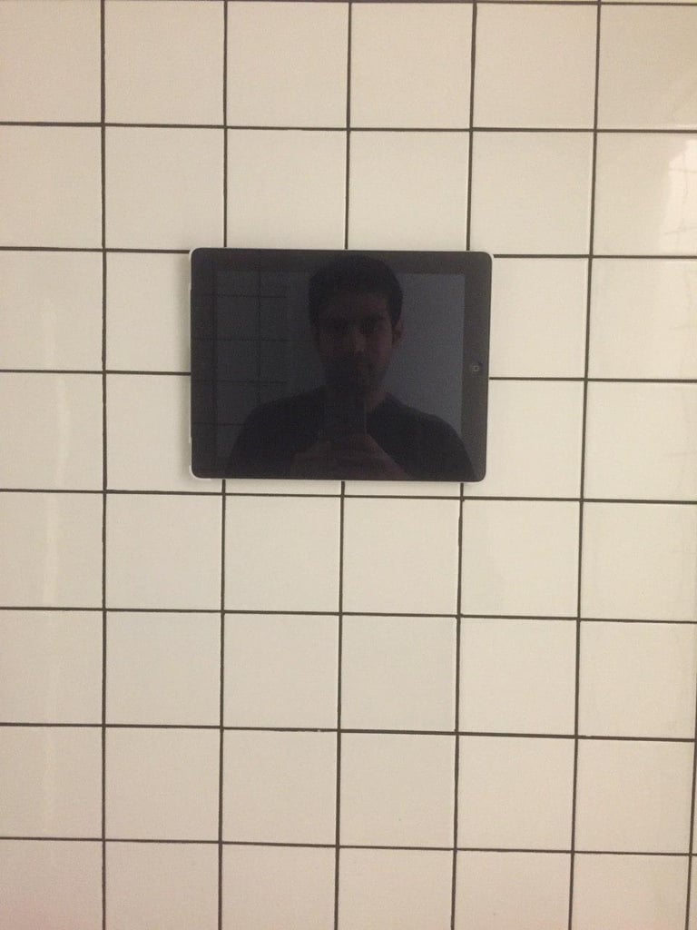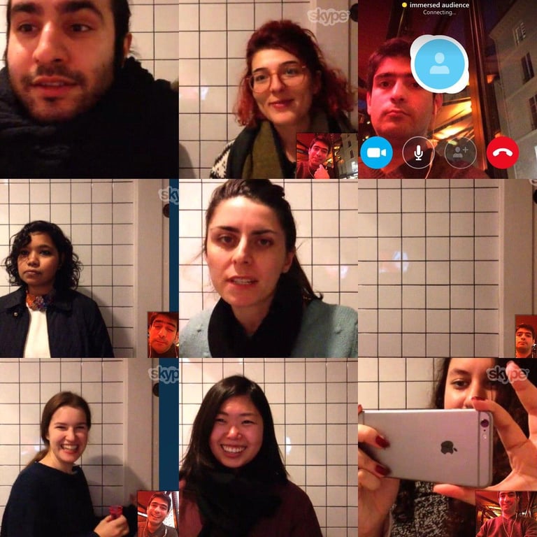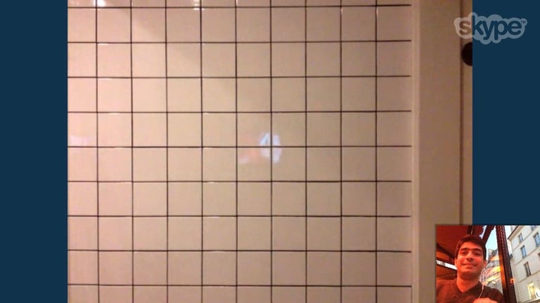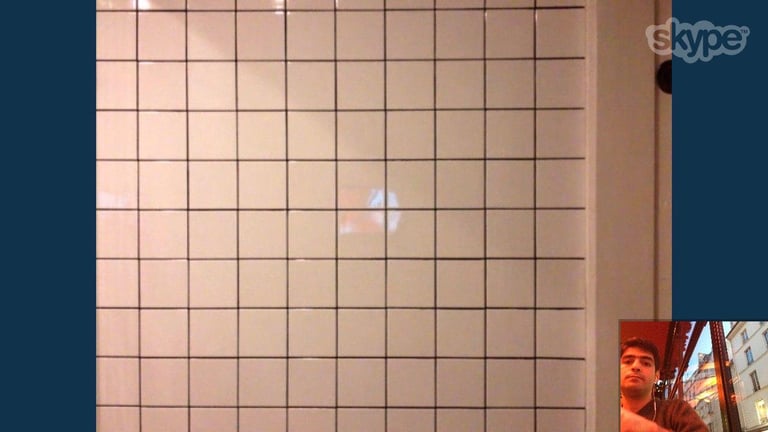 An Ipad is installed on the wall over the sink where the visitors while washing their hands, can talk with the artist who is sitting in a cafe in Paris. The performance lasted during the whole opening day of the exhibition.